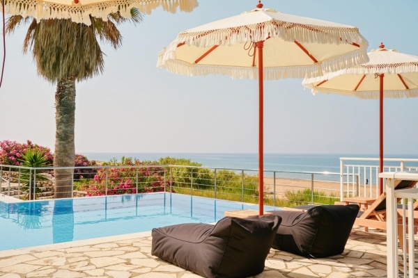 A szálloda a híres és nyüzsgő Skalától kb. 3 km-re található, a festői Mounda öbölben. A családi vezetés alatt álló létesítmény egy gondozott kertben helyezkedik el, amely a sziget egyik legszebb, a turistaforgalomtól érintetlen strandjában végződik. A szobákból, valamint a szálloda egyes részeiből egyedülálló kilátás nyílik a Jón-tenger türkizkék vizére. A buszmegálló kb. 2 km-re található. Minden korosztály számára ajánljuk.