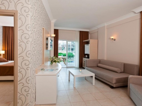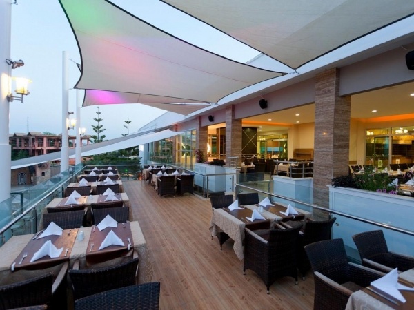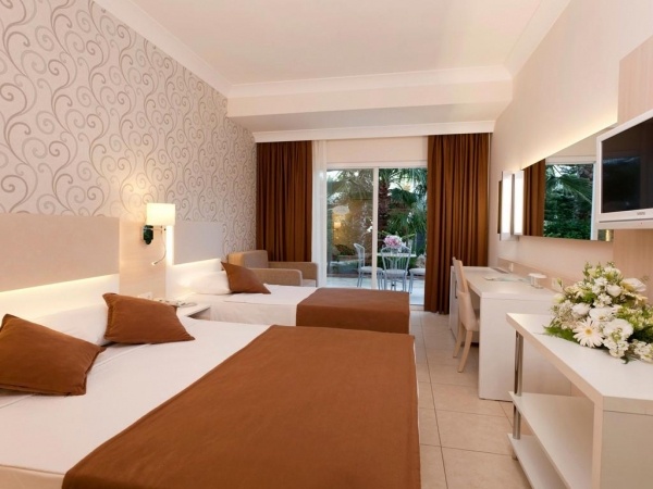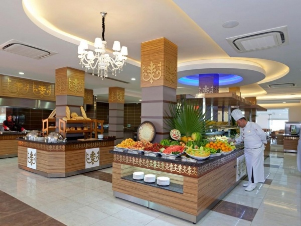 SZOLGÁLTATÁSOK: medencék napernyőkkel és napágyakkal o beltéri medence o csúszdák o fő étterem o bárok (lobby, pool, beach...) o soft animációs programok o asztalitenisz o darts o vízi torna o szauna o törökfürdő o wifi a lobbyban o térítés ellenében: SPA központ o törökfürdő kezelések o gőzfürdő o masszázs o peeling o fodrászat o üzletek o mosoda o orvosi szolgáltatás o biliárd o autó- és kerékpárkölcsönzés o vízi sportok a strandon o konferenciaterem