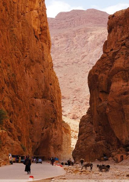 | 6. nap: Merzouga homokdűnéi és a Todra-szurdok | Korán kelünk, hogy a napfelkeltét már a sivatag dűnéin csodálhassuk meg. Reggeli után visszautazás Erfoudba terepjárókkal, majd buszra szállunk és folytatjuk utunkat Ouarzazate felé. Pálmaligetek, a vörös hegyekből kiemelkedő kasbák, berber falvak, színes ruhákba öltözött helyi asszonyok látványa kíséri utunkat a Todra szurdokig, amely Dél-Marokkó egyik legszebb látnivalója, meredek sziklafalak között hűvös völgyet rejt az út. Szállás és vacsora Ouarzazate-ban (1 éj).