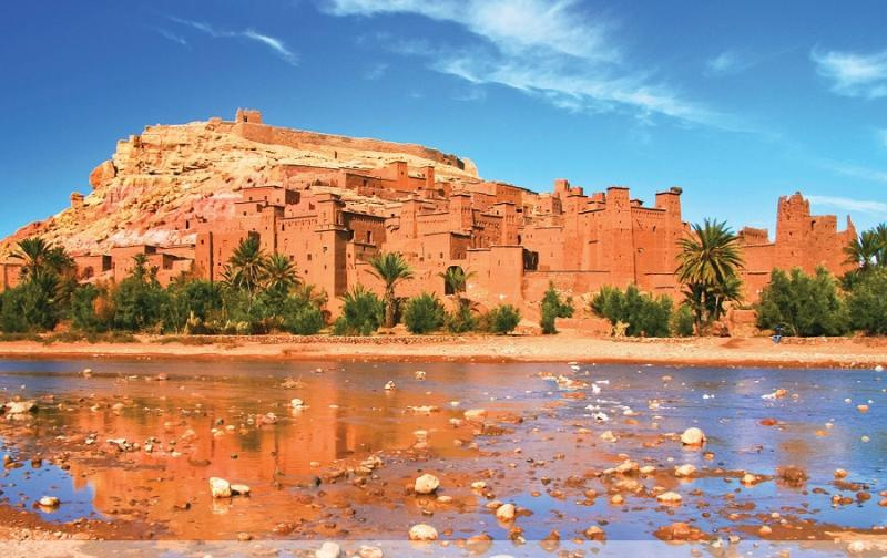 | 7. nap: Ouarzazate, Marrakech | Reggeli, majd városnézés Ouarzazate-ban, amely során megtekintjük a legfontosabb kasbákat: Aït-Benhaddou – az erődített falu, amelyet az UNESCO a világ kulturális örökségei közé sorolt. Bástyás tornyaival és geometrikus motívumokkal díszített épületeivel Marokkó egyik legszebb ilyen jellegű településének számít. Továbbutazás szép hegyi utakon, a Tizi n’Tichka hágón át Marrakech csodás városába. Szállás Marrakechben (1 éj).