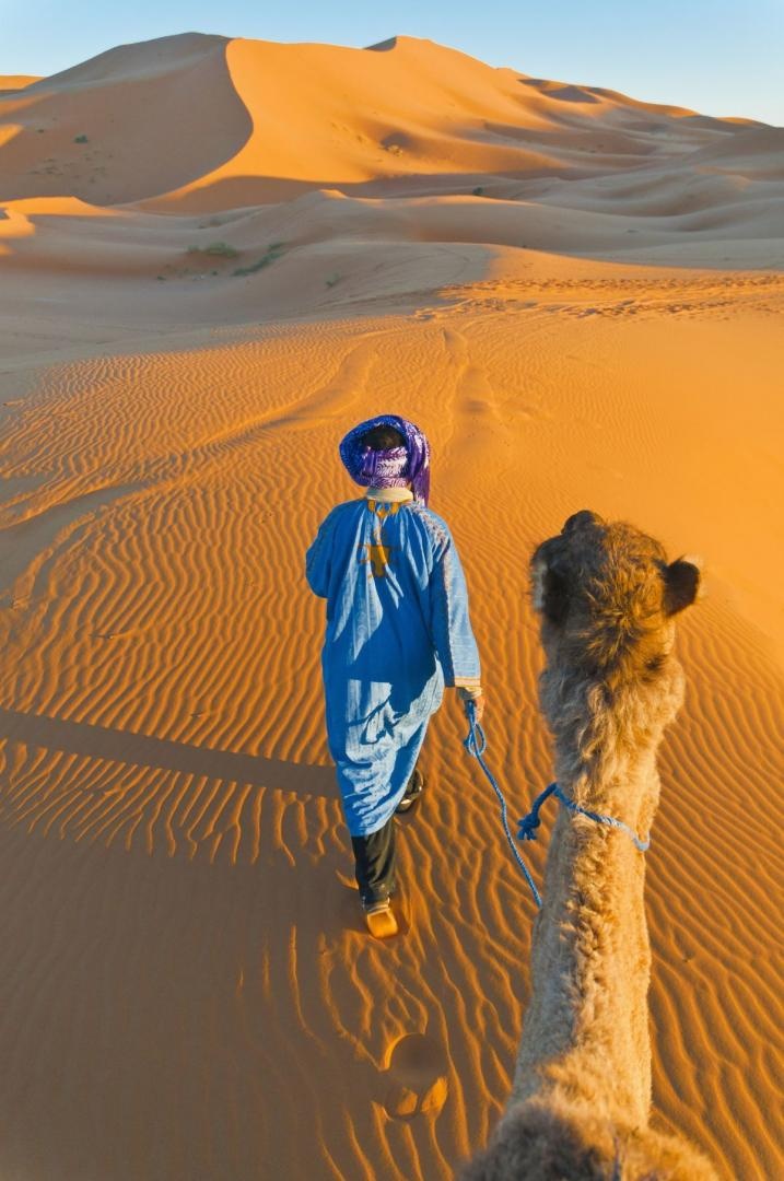 | 5. nap: utazás Merzouga-ba | A korai reggelit követően buszra szállunk és folytatjuk utunkat délre, a sivatag felé. A hosszú út változatos tájakon át vezet, a zöldellő hegyek lassan kopár hegyi tájba váltanak, lenyűgöző kanyonok, majd pálmaligetek között vezet az út a sivatag szélén épült Erfoud városkáig, ahol terepjárókba szállva közelítjük meg sivatagi szállásunkat Merzouga közelében. Szállás egy sivatagi sátortáborban (1 éj), ahonnan jó idő esetén fantasztikus naplementét csodálhatunk meg.