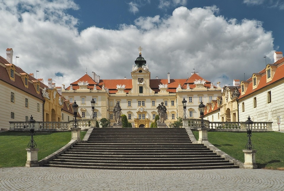 A cseh–osztrák határ közelében fekvő Valticei-kastély (Zámek Valtice) a Közép-Európa egyik legjelentősebb nemesi családja, a Liechtenstein hercegek egykori rezidenciája. A kastély története egészen a 11. századig nyúlik vissza, ám mai, lenyűgöző formáját a 17. és 18. századi nagyszabású barokk átépítéseknek köszönheti. Olyan neves európai építőmesterek keze nyomát dicséri az épület, mint Tencalla, Martinelli vagy Ospel, akik pompás dekorációkkal és monumentális megoldásokkal hangsúlyozták a hercegi család gazdagságát és befolyását.