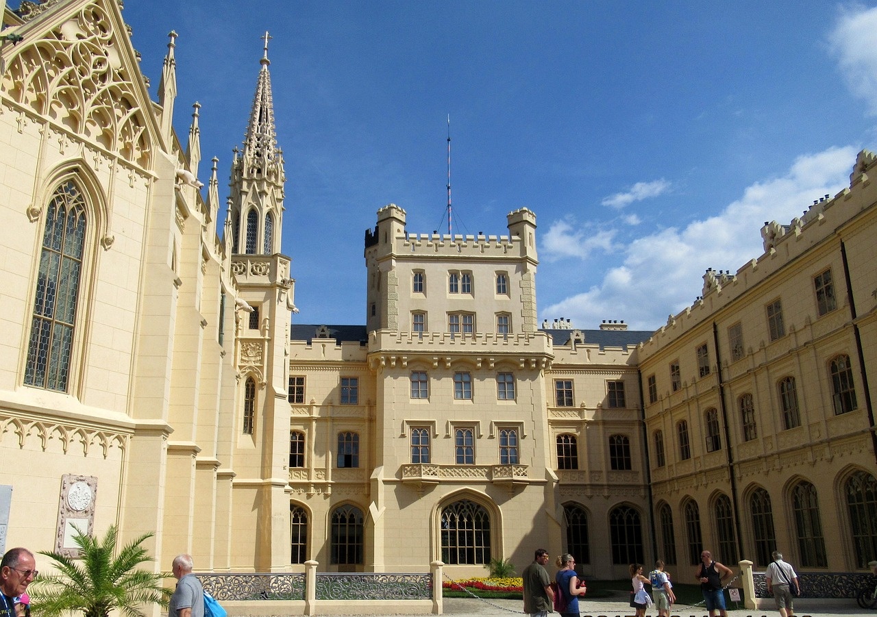 Kora reggel indulás a felszállási helyszíneknél megadott időpontok szerint. Folyamatos utazás rövid pihenővel Lednicébe. A varázslatos környezetben lévő csodaszép lednicei kastély eredetileg gótikus várnak épült, 1222-ben említik először, de jelenlegi formáját 1846-1858 között