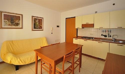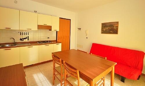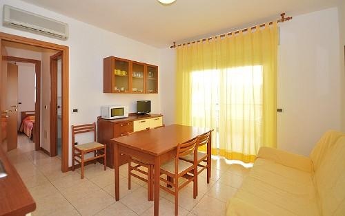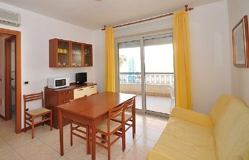 B TÍPUSÚ APARTMAN 3+2 férőhellyel: nappali konyhasarokkal és kétszemélyes kihúzható heverővel, hálószoba franciaággyal, fürdőszoba ablakkal és zuhanykabinnal, nagy berendezett terasszal.