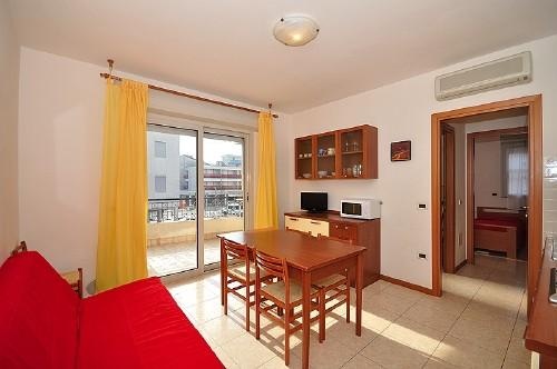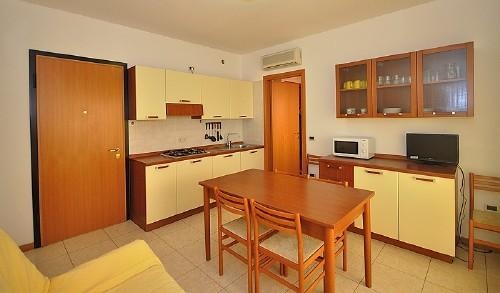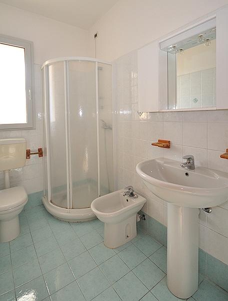 Kis residence, újépítésű apartmanokkal, Bibione Spiaggia központjában, körülbelül 250 méterre a tengerparttól, pár méterre a sétálóutcától. A ház alatt található mélygarázsban minden apartmannak egy számozott parkolóhelye van, ahonnan a modern lift is indul.