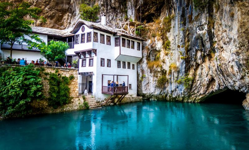 Ízletes reggeli után dél felé veszünk irányt. Félúton megállunk a Neretva folyó mentén fekvő, kis bűbájos vársokában, Konjicban. A város központján áll a XVII. századból származó 6 lyukú kőhíd, mely a mostari híd mellett az egykori Oszmán Birodalom legszebb hídjai közé tartozik. Amíg a többiek szebbnél szebb fotókat készíthetnek, addig a merészebbek fakultatív program keretében, kipróbálhatják a rafting túra izgalmait, profi túravezetőnk segítségével, egy folyó melletti grill ebéddel (a rafting túra résztvevői nem tudják megnézni Blagajt, hisz ők csak Mostarban csatlakoznak újból a csoporthoz). Rafting túra (neoprén felszereléssel): 70 EUR/fő. A csoport folytatja útját Blagaj felé. Blagaj-ban teszünk egy sétát a gyönyörű környezetben, a sziklafalba épült derviskolostorban, a Buna folyó forrásnál. Valóban nem mindennapi látvány!