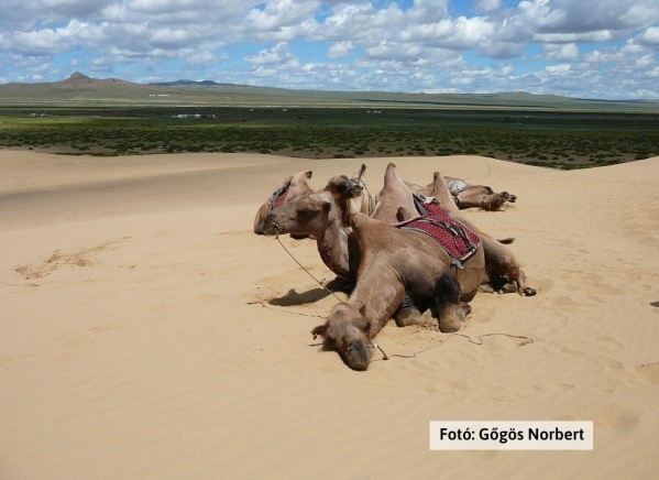 Reggeli után utazás Karakorum irányába. Útközben a sivatagi táj minden ízében a Góbi-ra emlékeztet, a területet hasznosító nomád családok tevetartással is foglalkoznak a lótenyésztés mellett. Tevegelési lehetőség a dűnék között (jelentkezés a helyszínen). Lóetetés, majd továbbutazás Karakorumba, a mongol világbirodalom néhai fővárosának helyszínére, majd látogatás az egykori központ határait jelző órás kőteknősök egyikénél. Vacsora és szállás a jurtatáborban. A táborban igény esetén szauna és masszázs felár ellenében igénybevehető.
