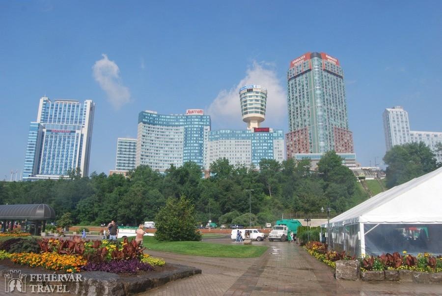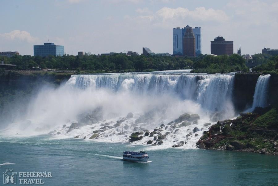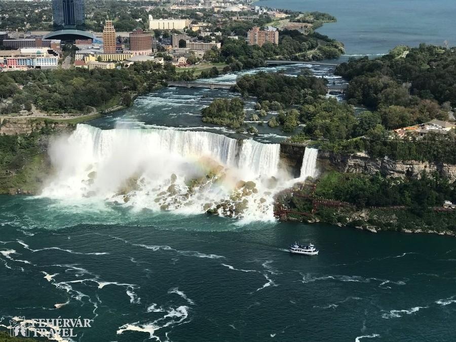 Kirándulás a Niagara-vízeséshez. Séta a vízesések kanadai oldalán, majd a klasszikus hajókirándulás következik, melynek végcélja a félelmetes robajjal lezúduló Patkó-vízesés. Lehetőség lifttel felmenni a 236 méter magas Skylon-toronyba, ahonnan lélegzetelállító panoráma nyílik a vízesésekre és a környező kanadai és amerikai területekre. Szabadidő, lehetőség kilenc perces helikopteres repülésre a vízesések felett (kb. 203 CAD – a helyszínen fizetendő).Délután ismerkedés Niagara on the Lake városkával. Ez a bájos település ott helyezkedik el, ahol a Niagara folyó beleömlik az Ontario-tóba. A XIX. század eleje óta szinte érintetlenül megmaradt ízléses villáival, épületeivel Kanada legszebb kisvárosai közé tartozik.