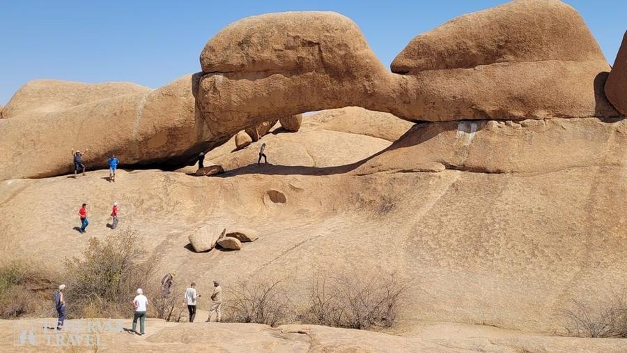 Utazás Otjiwarongóból az Atlanti-óceán felé délnyugati irányba Swakopmund városba (közel 400 km, kb. 6 óra a buszon). Útközben egy élő múzeumfalut látogatunk meg, ahol a busmanokkal és az életükkel ismerkedhetünk meg (pl. tűzgyújtás technikája, ékszerkészítés, kötélkészítés, énekek, táncok stb.). A rendkívül alacsony termetű busmanok Namíbia északkeleti részén élnek, egy jó részük még mindig vadászó-gyűjtögető életmódot folytat. „Az istenek a fejükre estek” című világhírű film a busmanok életmódját mutatja be.Délután egy kitérőt teszünk a Spitzkoppe hegy irányába, mely bizonyos szögből piramis formájú, ezért is szokták „Namíbia Matterhornjának” nevezni. A hegy és környéke a különleges sziklaalakzatairól nevezetes, a leghíresebb a Rock Arch (szikla boltív), melynek megközelítéséhez könnyű túrázási lehetőséget biztosítunk (csodálatos panoráma).A kora esti órákban érkezünk meg Namíbia legszebb városába, Swakopmundba, melyet egyik oldalról a Namib-sivatag, másik oldalról az óceán határol. A XIX. század végén a németek innen kezdték meg az ország gyarmatosítását, a városban ma is számos német gyarmati stílusban épült ház, palota emlékeztet erre az időszakra.A szállodai szobák elfoglalása (2 éj).