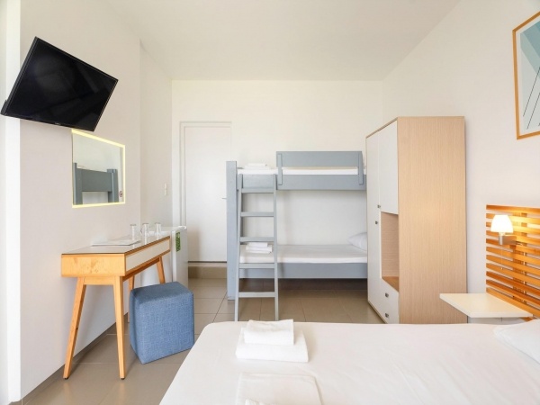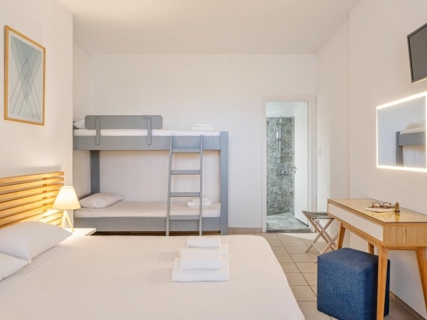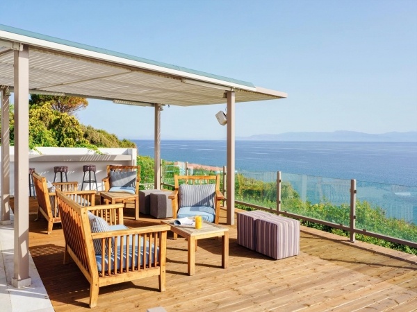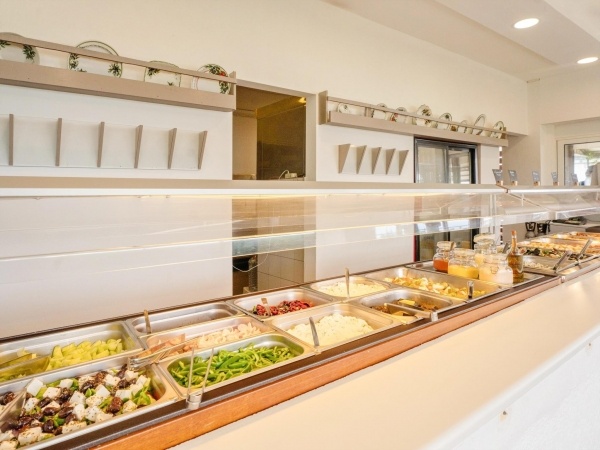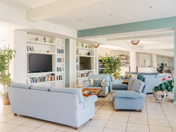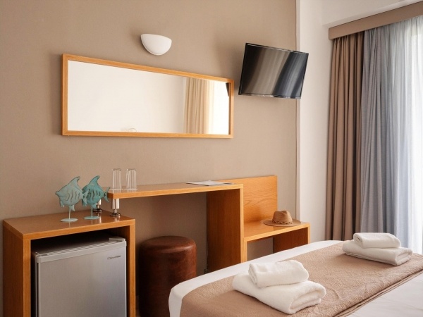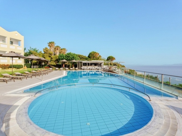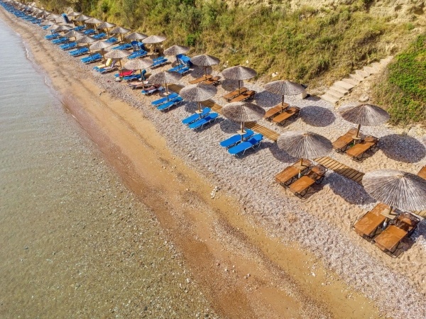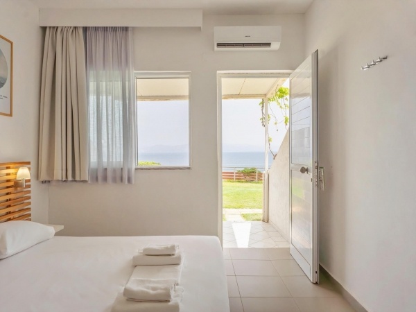 A szállodakomplexum főépületből és földszintes bungalóépületből áll. Peloponnészosz nyugati részén, csendes környezetben, egy szépen gondozott kertben található, közvetlenül egy kavicsos/homokos strand felett. A létestíményből csodálatos kilátás nyílik a Patrasz-öböl-re. A kb. 3,5 km-re fekvő Kato Achaia városába helyi buszokkal is le lehet jutni, és több taverna, kávézó és kis üzlet is rendelkezésre áll. Ideális választás párok és egyedül utazók számára.