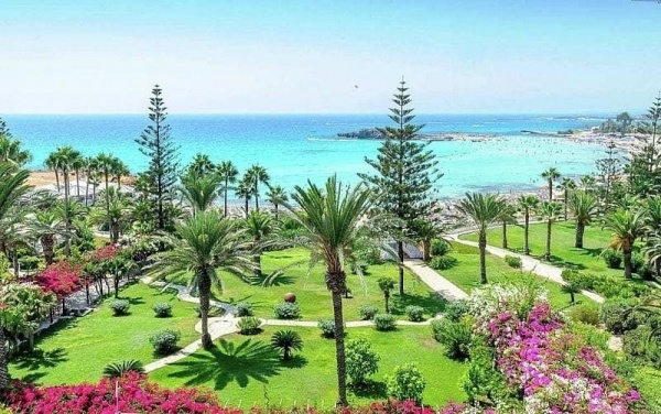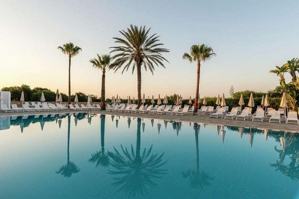 A főépületből és bungalókból álló szállodakomplexum egy hatalmas kertben fekszik, közvetlenül a Nissi strand mellett, Ayia Napa nyüzsgő központjától kb. 200 m-re. A közelben üzletek, éttermek és tavernák találhatók. A menetrend szerinti busz megállója kb. 200 m-re. Aquapark kb. 2 km-re.