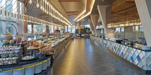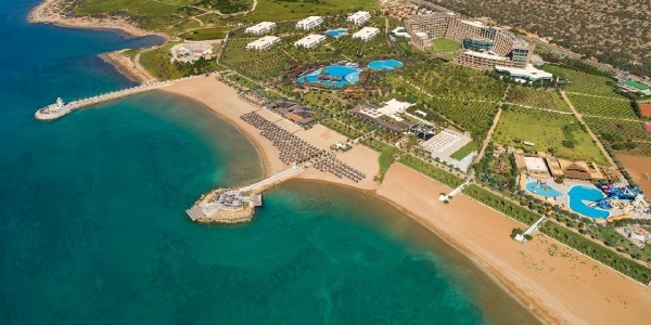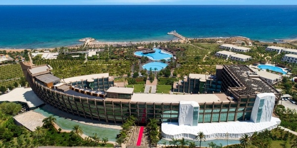 Ellátás: Ultra alll inclusive ellátás, benne: svédasztalos reggeli (07:00-11:00), svédasztalos ebéd (12:00-14:30), svédasztalos vacsora (19:00-21:30) és éjjeli snack vacsora (00:00-01:30) a központi étteremben, napközben snackbüfé a tengerparti étteremben (12:30-16:30). Sütemények, kávé és tea szünet a főépületi kávézóban és a Beach bárban (17.00-18.00), jégkrém a snack étteremben (12.30-15.30). Korlátlan és térítésmentes italfogyasztás az étkezések alatt a központi étteremben illetve a Relax (10:00-18:00); Fora (11:00-16:30), Aquapark (10:00-17:30), Villa-pool (10:00-19:00), Beach (10:00-01:00), Moon Arena (20:00-00:00) bárokban és a főépületi kávézóban (10:00-20:00) az italválaszték a szálloda által meghatározott import prémium márkás italokra és koktélokra, teára, gépi kávéra és török kávéra szól, azonban az a palackozott italokra és a frissen facsart narancslére és főzött kávékra nem vonatkozik. Térítésmentes minibár fogyasztás (naponta ingyenes feltöltés, üdítőitalok, ásványvíz és sör), csúszdapark használata 10:00-12:00 és 14:00 -17:30 között, WiFi internetkapcsolat, szauna, gőzfürdő, törökfürdő, fedett medence és az edzőterem használata. A megjelölt időpontokon kívül illetve a szálloda további bárjaiban és éttermeiben a fogyasztásért illetve a strandon privát pavilonbérlésért és vízipipa használatért térítést kell fizetni.