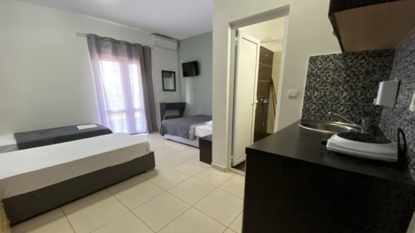 A My Hotel Apartman és az Anesis Apartman szomszédságában található. Recepcióval és külső, fedett kiülős résszel rendelkezik.