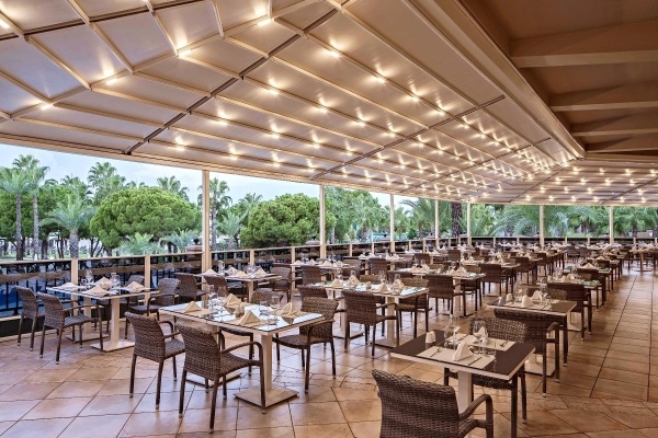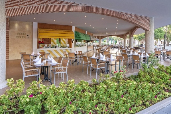 - Ultra All Inclusive: minden étkezés büférendszerben, kávé, tea és palackozott üdítők reggelinél, üdítők, sör, bor és egyes helyi alkoholos italok ebédnél és vacsoránál, gyermek- és diétás büfé, éjféli snack-ételek 00:00 és 02:00 óra között, a cukrászdában sütemények, fagylalt és kekszek 11:00 és 18:00 óra között, snack-ételek a Food Cornerben 12:00 és 16:00 óra között (tészta, pizza, gözleme, szendvicsek, kebab, saláták, fagylalt, gyümölcs stb.), helyi alkoholos és alkoholmentes italok a teraszos bárban egész nap, , a pool-bárban 09:00 és 19:00 óra között, a strandbárban 09:00 és 02:00 óra között, a koktélbárban 18:00 és 22:00 óra között, a sörbárban 14:00 és 21:00 óra között. Az Ultra All Inclusive szállodák szolgáltatásai bizonyos részletekben szállodánként eltérhetnek.