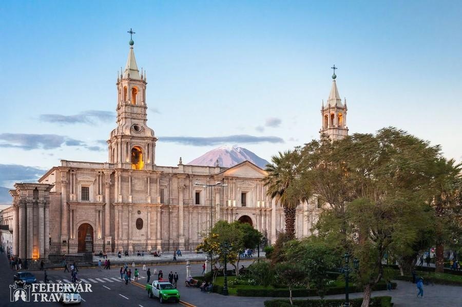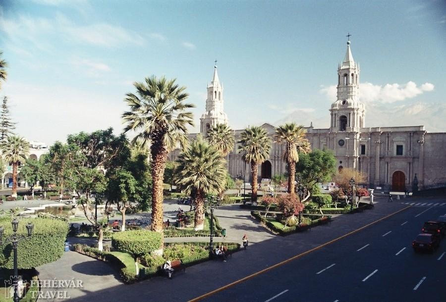 Arequipa, az örök tavasz városa közel 6000 méteres hegyek lábainál fekszik. A város nagy nevezetessége a Szt. Katalin-kolostor, Dél-Amerika egyik legjelentősebb gyarmati korból származó emléke. A hatalmas (100 méter * 200 méter) területen fekvő, magas falakkal körbevett épületegyüttes valóságos város a városban, amelynek megtekintése a turisták számára egyfajta időutazással ér fel.Ezután a város egyéb nevezetességeivel ismerkedik a csoport: katedrális, monumentális főtér, jezsuita templom (melynek egyik kápolnája olyan szép, hogy Arequipa Sixtus-kápolnájának nevezik), Carmen Alto kilátópont stb.A délután hátralevő részében szabadidő Arequipában: lehetőség pihenésre, vásárolgatásra, vagy további nevezetességek felkeresésére.