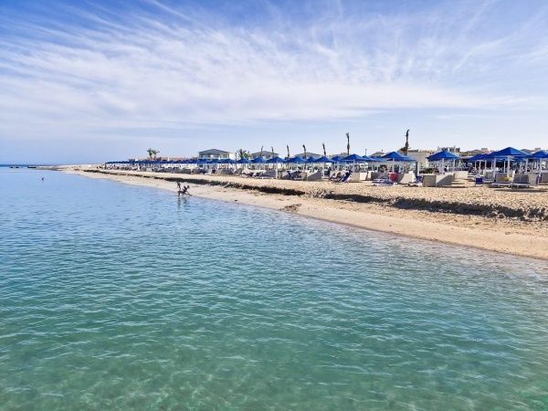 - lassan mélyülő homokos tengerpart (vízbe lépve köves/korallos, fürdőcipő viselete ajánlott)