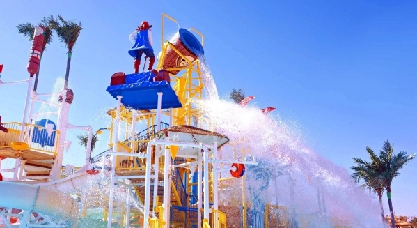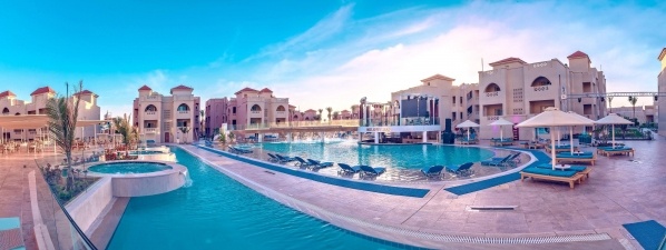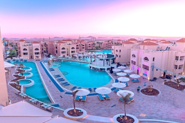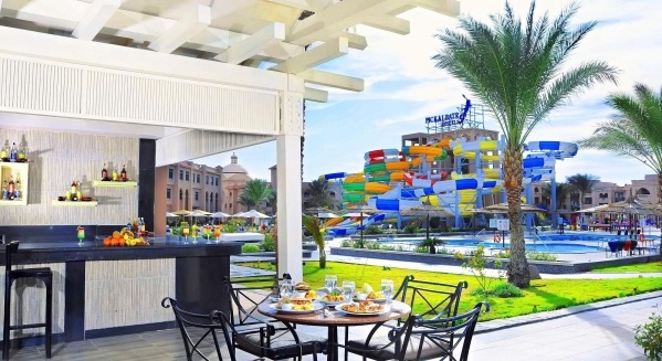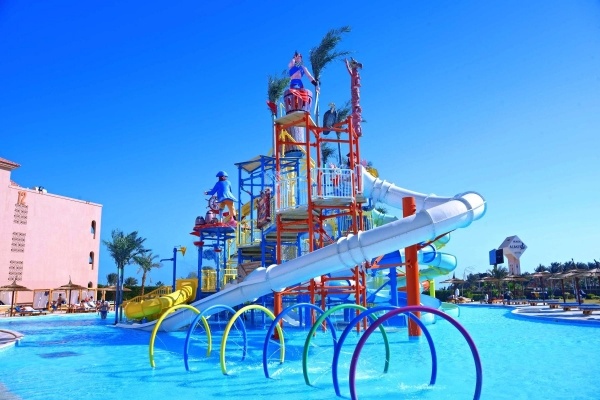A villakomplexum kb. 600 m-re fekszik a homokos tengerparttól, amely egy kis úton érhető el, és ingyenes buszjárattal is el lehet jutni. A szállodában található Hurghada egyik legnagyobb aquaparkja csúszdákkal és mesterséges hullámmedencével. Kitűnő szolgáltatásai miatt jó választás a víz szerelmeseinek és a gyermekes családoknak egyaránt.