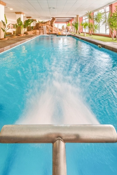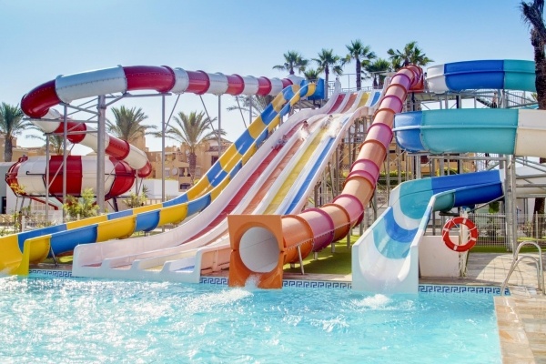 - 2 medence (az egyik csúszdákkal és vízicsúszdákkal), napágyak és napernyők ingyenesen, törölközők kaució ellenében