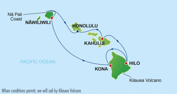 | 4. nap | Hilo (Hawaii, Amerikai Egyesült Államok) | 8:00 | 18:00 |