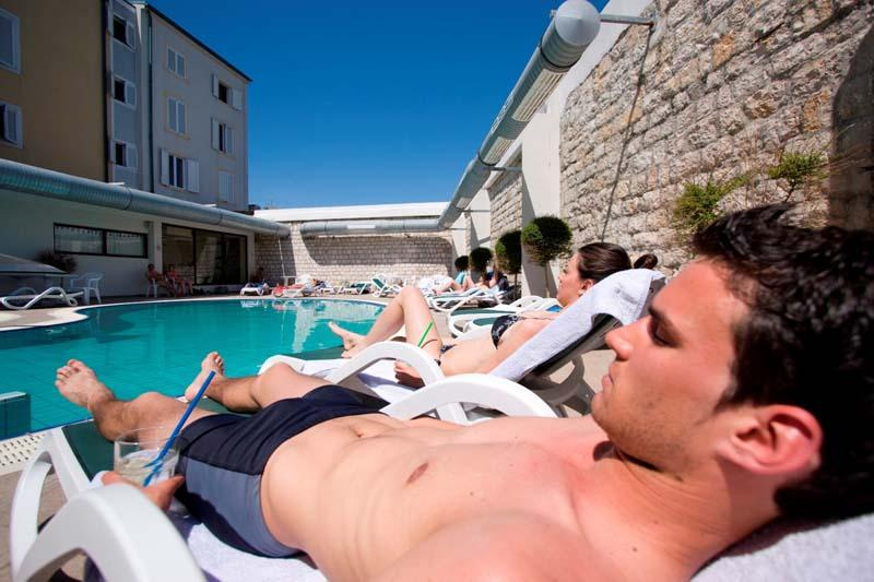 Hotel International 3* Rab óvárosban a kikötőben, strandtól 300 m-re. Szobák: 2 ágy, pótágyazható (akár 2 pótággyal), fürdőszoba hajszárítóval, telefon, TV, széf, WiFi, klíma, tengerre vagy az óváros utcáira néző kilátással. Erkély nincs. Egyágyas szoba: 1 ágy, de felszerelése azonos. Szálloda nyitott édesvízű medencéje díjmentesen használható!