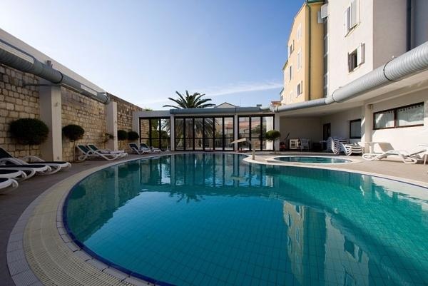 Hotel International 3* Rab óvárosban a kikötőben, strandtól 300 m-re. Szobák: 2 ágy, pótágyazható (akár 2 pótággyal), fürdőszoba hajszárítóval, telefon, TV, széf, WiFi, klíma, tengerre vagy az óváros utcáira néző kilátással. Erkély nincs. Egyágyas szoba: 1 ágy, de felszerelése azonos. Szálloda nyitott édesvizű medencéje díjmentesen használható.