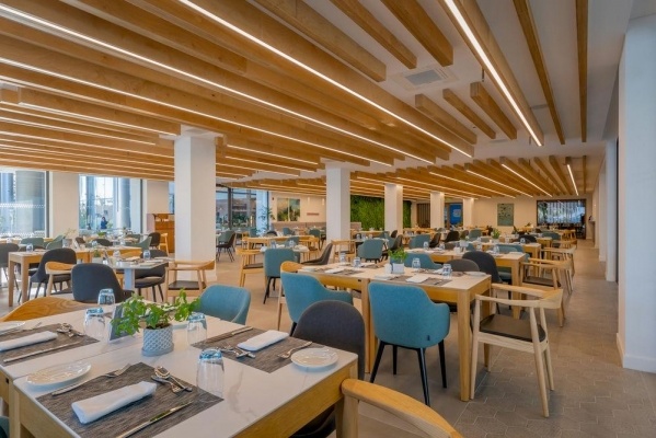 Étkezés: bőséges, nemzetközi büféreggeli, friss pékárukkal, ciprusi és görög specialitásokkal (halloumi, friss gyümölcsök, olívák), hideg és meleg ételekkel, frissen készített tojásételekkel. Felár ellenében félpanzió reggelivel és vacsorával vagy teljes panzió (+ebéd) foglalható. Az ebéd és vacsora során változatos büféasztal, nemzetközi és mediterrán fogásokkal, látványkonyhával, ahol a séfek helyben készítik el a húsokat, halakat és tésztákat. Heti tematikus estek színesítik a kínálatot, például ciprusi, olasz vagy ázsiai konyhával.