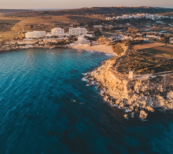 Fekvése: A szálloda Málta nyugati partján, a festői Golden Bay homokos strandja felett helyezkedik el, közvetlen tengerparti elhelyezkedéssel.