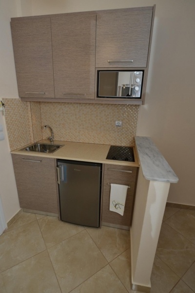 A keskeny homokos tengerparttól mindössze 50 m-re fekszik. A ház Agios Sostis központi részének a szélén található. Nagyon tiszta, rendezett ház. A közelmúltban felújított szobák szállodai minőségűek. Előtte a kedves tulajdonos család szupermarketje üzemel. (Foglaláskor kérjük vegyék figyelembe az ágyak típusát és elrendezését, mert rögztíve vannak, nem átrendezhetőek!)