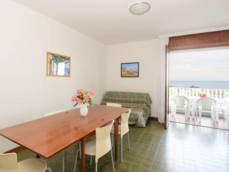 L10: két háromágyas hálószoba, hálószoba franciaággyal, nappali konyhasarokkal és kétszemélyes díványággyal, konyhasarok, 2 fürdőszoba zuhanyzóval és WC-vel, illetve egy nagy tengerre néző erkély. 1 parkolóhely kb. 800 m-re