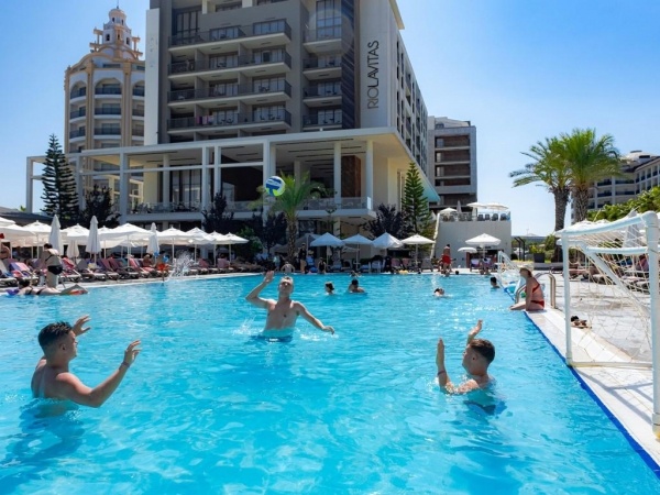 medencék napernyőkkel és napozóágyakkal o fedett medence o csúszdák o jacuzzi o főétterem o bárok (lobby, medence, tengerpart) o cukrászda o nappali és esti animációs programok o esti show o élőzene o fitneszterem o asztalitenisz o darts o vízilabda o futballpálya o strandröplabda o törökfürdő o szauna o gőzfürdő o wifi o térítés ellenében: SPA központ o törökfürdő-kezelések o masszázs o szépségszalon o fodrászat o üzletek o mosoda o orvosi szolgálat o autó- és kerékpárkölcsönzés o vízi sportok a tengerparton o konferenciaterem