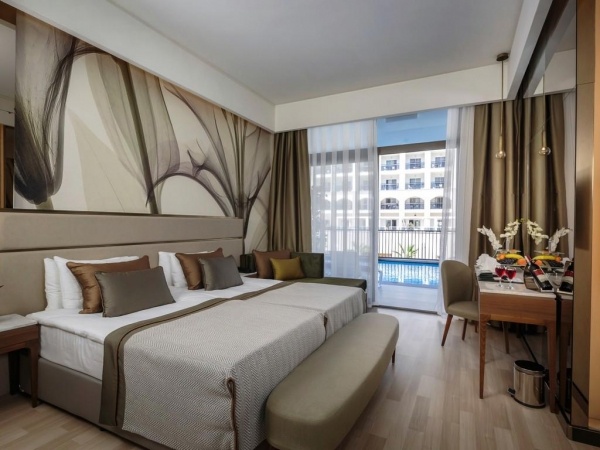 ELHELYEZKEDÉS: Manavgat kb. 4 km o Side kb. 8 km o Antalya repülőtér kb. 75 km o kb. 17 000 m? területű komplexumban fekszik o a közeli városok busszal (dolmuş) vagy taxival érhetők el o a hotel akadálymentesített megközelítéssel rendelkezik