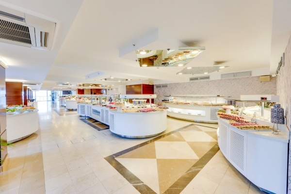 - All Inclusive Plus: minden étkezés büférendszerben, reggeli korán kelőknek 07:00 és 08:00 óra között, reggeli kásőn kelőknek 10:00 és 11:00 óra között, éjszakaisnack-ételek 00:00 és 01:00 óra között, délután snack-ételek 12:30 és 16:30 óra között, cukrászda 11:00 és 18:00 óra között, éjszakai szendvicsek 00:00 és 07:00 óra között, vacsora a 3 a'la carte-étterem (hal, olasz, török) egyikében térítés ellenében 19:00 és 21:30 óra között (előzetes foglalás szükséges), helyi és egyes import alkoholos és alkoholmentes italok egész nap a Panorama bárban. Az All Inclusive Plus szállodák szolgáltatásai bizonyos részletekben szállodánként eltérhetnek.