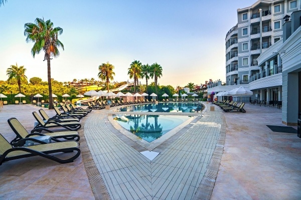 A szépen kialakított 5 csillagos szálloda Side/Colakli-ban található, közvetlenül a homokos tengerparton. A központ dolmussal vagy taxival is elérhető. A szálloda szépen kialakított kényelmes szobákat, Ultra All Inclsuive ellátást és gyönyörű kilátást kínál a vendégeknek. Minden korosztály számára ajánljuk.