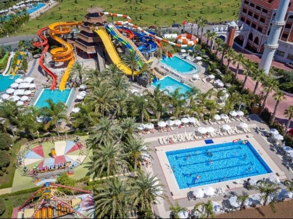 - 3 medence (összesen több mint 3.300 nm-en) napernyőkkel és napozóágyakkal, 3 gyermekmedence, aquapark 5 felnőtt és 5 gyermekcsúszdával, 7 étterem, 9 bár, széleskörű nappali és esti animációs programok, diszkó, heti egy alkalommal tematikus party, török-, tánc- és musical estek, élő zene (bizonyos napokon), miniklub (4-12 éves korig), széleskörű gyermekanimációs programok tematikus napokkal, minidiszkó, játszótér, minifoci, mini kosárlabda, minibowling, reggeli torna, step aerobik, boccia, strandröplabda, vízilabda, vízi torna, táncleckék, darts, teniszpálya (napközben), fitneszterem, szauna, törökfürdő, kis sávszélességű WIFI a szobákban és a lobbyban.