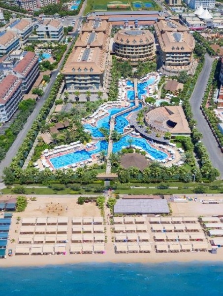- Medencék (összesen több mint 3.300 nm-en) napernyőkkel és napozóágyakkal, 3 gyermekmedence, aquapark 5 felnőtt és 5 gyermekcsúszdával, 7 étterem, 9 bár, széleskörű nappali és esti animációs programok, diszkó, török-, tánc- és musical estek, élő zene (bizonyos napokon), miniklub (4-12 éves korig), széleskörű gyermekanimációs programok tematikus napokkal, minidiszkó, játszótér, minifoci, mini kosárlabda, minibowling, reggeli torna, step aerobik, boccia, strandröplabda, vízilabda, táncleckék, darts, fitneszterem, szauna, törökfürdő, WiFi a szobákban és a lobbyban.