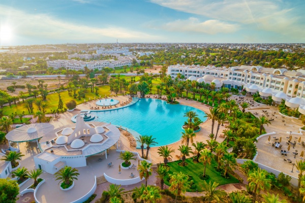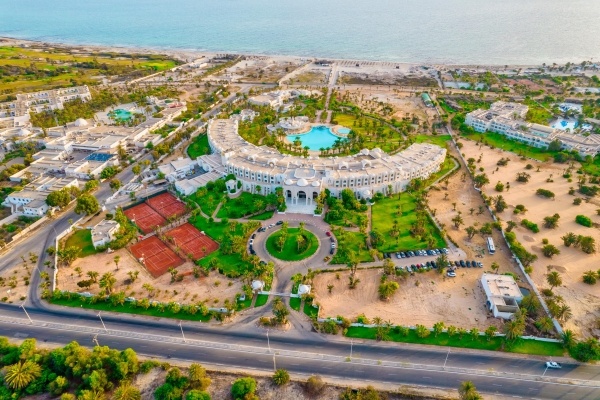 A szálloda Houmt Souk várostól és egy bevásárlóközponttól kb. 18 km-re fekszik, 20000 négyzetméteres kerttel körülvéve. A félhold formában épített komplexum közvetlenül egy 27 lyukú golfpálya mellett fekszik, rövid sétára a legszebb tengerparttól. Kitűnő szolgáltatásokat nyújtó szálloda, minden korosztály számára ajánljuk.