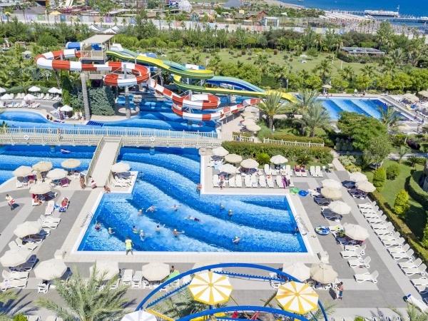 A szépen kialakított szálloda Larában található, közvetlenül a saját homokos/kavicsos strandján. A családbarát létesítményben aquaparkkal, több étteremmel és változatos animációs programokkal várják a vendégeket. Elsősorban családok számára ajánljuk.