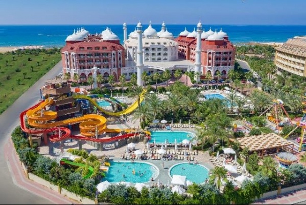 Élje át Ön is a keleti békességet és élvezze a kelet pompáját a Török Riviérán! A Royal Taj Mahal Hotel az indiai Agrában található, az UNESCO világörökség részeként, illetve a Világ 7 új csodájaként számontartott Taj Mahal mintájára épült, tematikus szálloda. A Stone Group hotellánc 2015 júniusában megnyílt tagja testvérszállodája, a Royal Dragon Hotel mellett terül el Evrenseki-ben, az antalyai repülőtértől 48 km-re, Side központjától 5 km-re, közvetlenül saját, lassan mélyülő, homokos tengerpartján. A közeli városokba helyi buszjárattal (dolmussal) vagy taxival könnyedén bejuthatunk. A csillogó szálloda egyedülálló élményeket ígér; nyúljon el a hűs medencék partján egy koktéllal a kezében, vagy élvezze a széleskörű programválasztékot, az ámulatba ejtő, esti show-műsorokat, illetve az izgalmas, adrenalinnövelő vízi sportokat a gyönyörű, homokos tengerparton. Itt gyermekei is garantáltan jól szórakoznak majd; a hotel a kicsiket képzett animátorokkal, aquaparkkal és vidámparkkal várja.