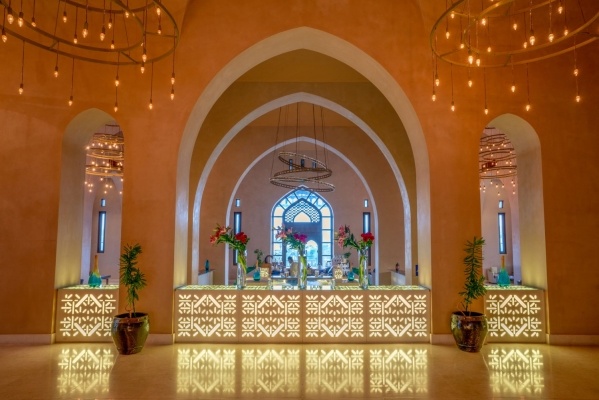A fényűző 422 szobás luxusszálloda a repülőtértől 35 kilométerre, a festői Indiai Óceán partján helyezkedik el. A többhektáros területen fekvő modern szállodakomplexumot több épületből egy mesterséges lagúnarendszerben alakították ki megőrizve a hagyományos arab építészetet és sítust.