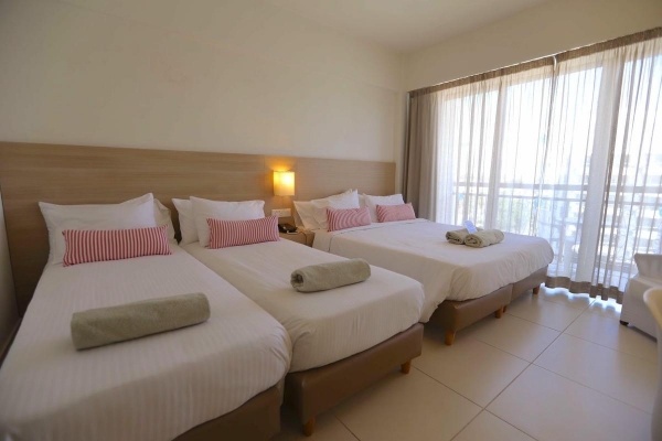 Szobák: minden standard szoba kényelmes és világos, modern bútorokkal felszerelt, egyhálószobás (~23m2), fürdőszobás, légkondicionálóval, síkképernyős tv-vel, hajszárítóval, széffel és telefonnal felszerelt. Minibár fogyasztás, térítés ellenében. A szuperior és a családi szobák (~23m2), felszereltségben megegyeznek a standard szállodai szobákkal, előnyösebb fekvésűek és szebben berendezettek. Mindegyik szobához erkély tartozik oldal tengerre néző kilátással.