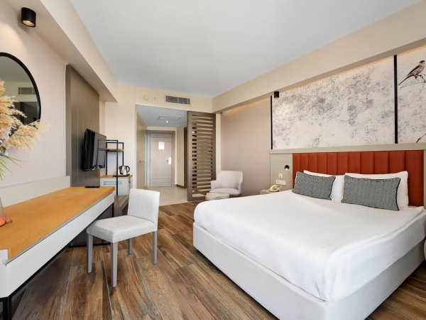 SZOBÁK: 460 szoba o erkély o egyéni légkondicionálás o hajszárító o telefon (térítés ellenében) o TV o széf o minibár (érkezéskor víz, üdítő és sör, naponta vízzel feltöltve) o vízforraló o kávé- és teafőző szett o Economy szoba: 28 m?, max. 2 fő, francia erkély, kertre néző o Standard szoba: 28 m?, max. 3 fő, kilátás tengerre, kertre vagy oldalról tengerre o Standard Comfort szoba: 28 m?, max. 3 fő, tengerre néző o Családi szoba: 48 m?, max. 4 fő, 2 különálló szoba, kertre vagy tengerre néző