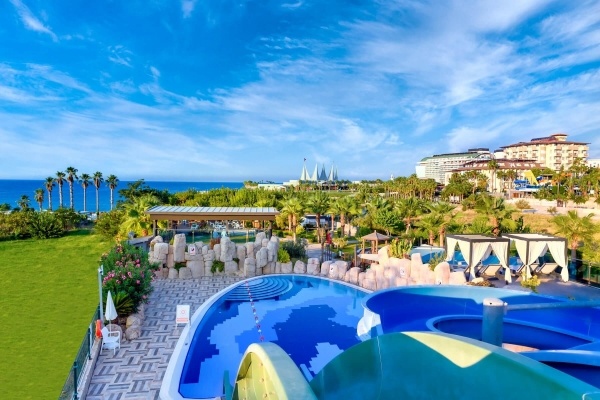 A közvetlenül a gyönyörű, homokos tengerparton fekvő, 5 csillagos szálloda kiváló szolgáltatásokat és lélegzetelállító kilátást kínál a Taurus-hegységre és az Égei-tengerre. A vendégeket Ultra All Inclusive ellátás, aquapark, spa-részleg, több étterem és hangulatos esti szórakoztató programok várják.