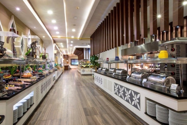 - Ultra all inclusive: reggeli, ebéd és vacsora büférendszerben, gyermekbüfé, kései reggeli, frissen facsart narancslé a reggelinél, napközben snack ételek, kávé/tea/sütemények, éjszakai snack (22:00-07:00 között), pide, gözleme és fagylalt bizonyos időpontban, számos helyi és néhány import alkoholos és alkoholmentes ital (08:00-02:00), naponta üdítők, víz és sör a minibárból.