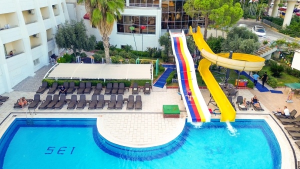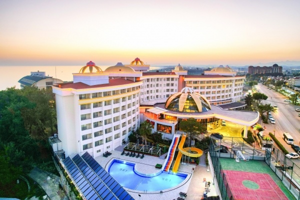 A 6 emeletes főépületből és az út túloldalán elhelyezkedő 2 szintes melléképületekből (nincs lift) álló, Adults Only szálloda Side Kumköyben található, kb. 3 km-re Side óvárosától, ahova helyi buszokkal (dolmuszokkal) is el lehet jutni. Az 5 csillagos, nyugodt helyen fekvő, 2 medencével, vízicsúszdákkal és wellness-központtal rendelkező létesítményben garantált a pihenés. Saját homokos strandja, kb. 200 m-re helyezkedik el, ahova buszjárat közlekedik.
