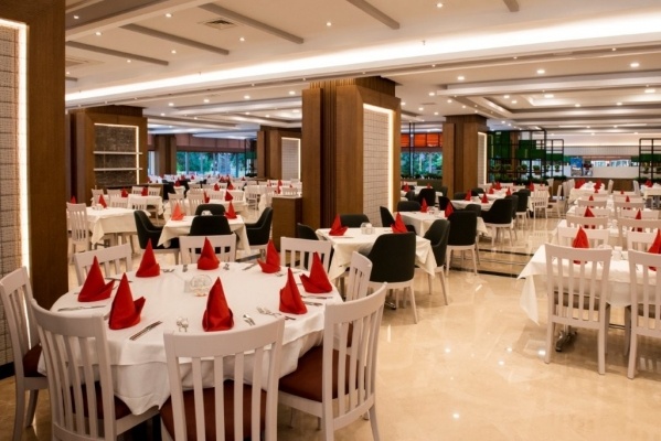 - All Inclsuive: Reggeli, ebéd és vacsora büférendszerben, késői reggeli, diétás ételek, napközbeni snackek, helyi alkoholos és alkoholmentes italok (10:00-24:00 között), naponta vízzel feltöltött minibár, 3 a'la carte étterem (tenger gyümölcsei, török, olasz; tartózkodás során 1 alkalommal, előzetes asztalfoglalással).