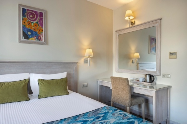 |A szobákat légkondicionáló berendezéssel, központi fűtéssel és fürdőszobával szerelték fel. A szobákban egy franciaágy vagy egy king size ágy található. Különálló hálószobák foglalására is lehetőség van. Kiságyat igény esetén ingyenesen biztosítanak. Ezen kívül van széf és minbár is. Az alapfelszereltséghez tartozik egy tea-/kávéfőző is. Internet-hozzáférés, egy telefon, egy TV-készülék és WiFi is a vendégek kényelmét szolgálja a nyaralás alatt. A vendégek ezen kívül papucsot is találnak a szobákban. Mozgáskorlátozottaknak kialakított szobák is foglalhatóak. A fürdőszobában zuhanyzó található. A fürdőszobában található hajszárító és kozmetikai tükör a mindennapi kényelmet szolgálják. A kényelemhez hozzájárul, hogy a fürdőszobákban kozmetikai cikkek is található(ak). Családi szobát és nem dohányzó szobát is foglalható.