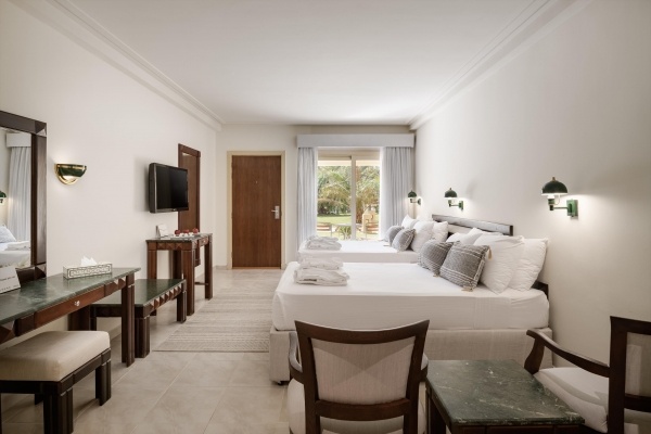 - Deluxe-családi szobák - 1 hálószoba, 2 queensize-ágy, medencére vagy kertre nézők, a földszinten