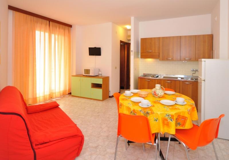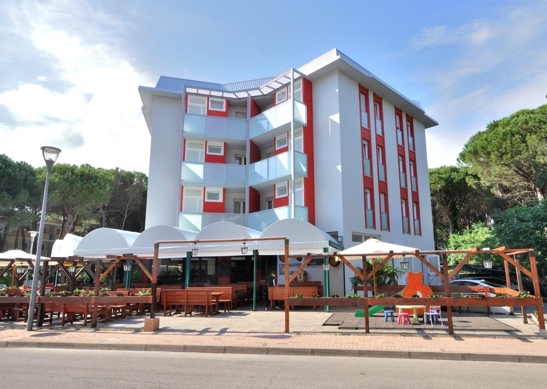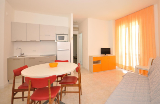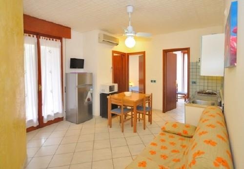 A lift nélküli apartmanház Bibione Lido del Sole részén található, 150 méterre a tengerparttól.