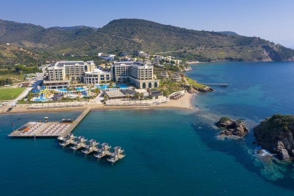 Az igényesen kialakított 5 csillagos luxusszálloda közvetlenül a Kék Zászló díjjal kitüntetett strandon fekszik. Minőségi szolgáltatásokkal, több medencével és csúszdás aquaparkkal, modern és ízlésesen berendezett szobákkal, gazdag gasztronómiai kínálattal és változatos gyermekbarát szolgáltatásokkal várja a pihenésre vágyó vendégeket.