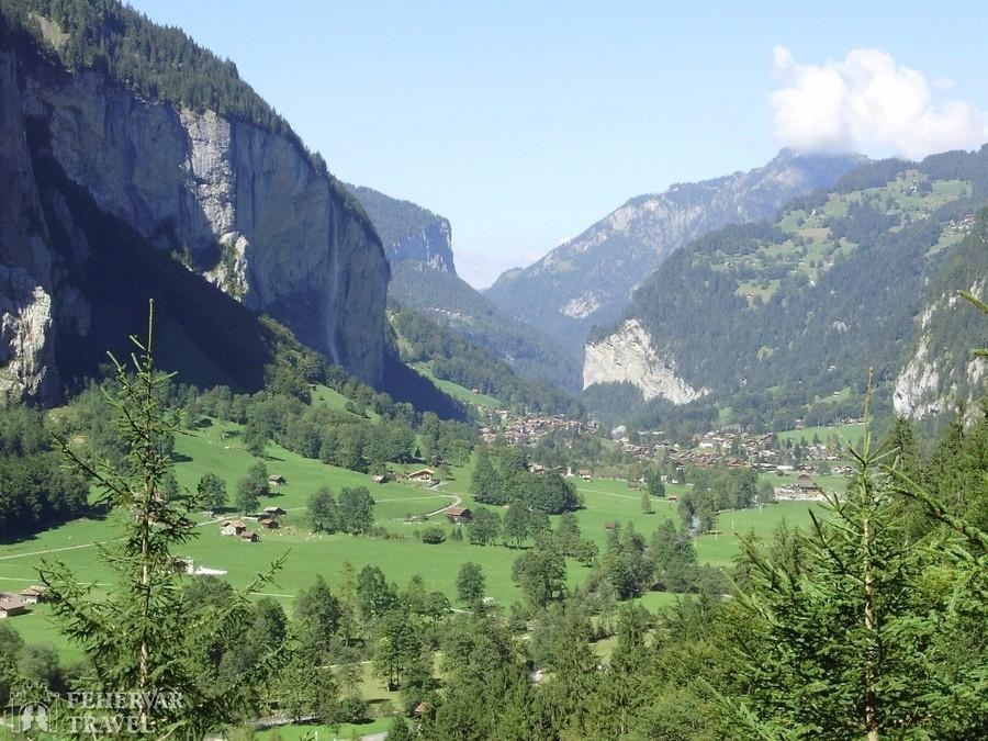 Utazás Interlaken érintésével a Berni-Alpok (a Jungfrau-csoport) 4000 m magas hegyei között fekvő Lauterbrunneni-völgybe, Európa talán legszebb gleccservölgyébe. Délelőtt a Trümmelbach-gleccservízesések megtekintése (10 vízesés egy hegy belsejében), majd lehetőség könnyű túrázásra, vagy pedig a híres Jungfrau fogaskerekű vasúttal egy kilátópont elérésére. A panoráma egy életre szóló élmény.A nap zárásaként utazás az egyik leghangulatosabb svájci városba, a gyönyörű fekvésű Luzernbe. Séta az óvárosban, a város jelképeinek, a Kapellbrückének (középkori fedett fahíd) és az Oroszlános emlékműnek a megtekintése.Figyelem: a Trümmelbach-gleccservízesések látogatói központja a július-augusztusi hónapokban egyáltalán nem fogad csoportokat, ezért a csoportos foglalásokat ezen időszakra vissza sem igazolják a nyári főszezon túlzsúfoltságának csökkentésére hivatkozva. Ebből következően a júl. 5-i és az aug. 4-i csoportok nem tudják a vízeséseket meglátogatni, viszont így utasaink több időt tudnak Luzernben és a Jungfrau környékének legszebb helyén, a Kleine Scheideggen eltölteni.